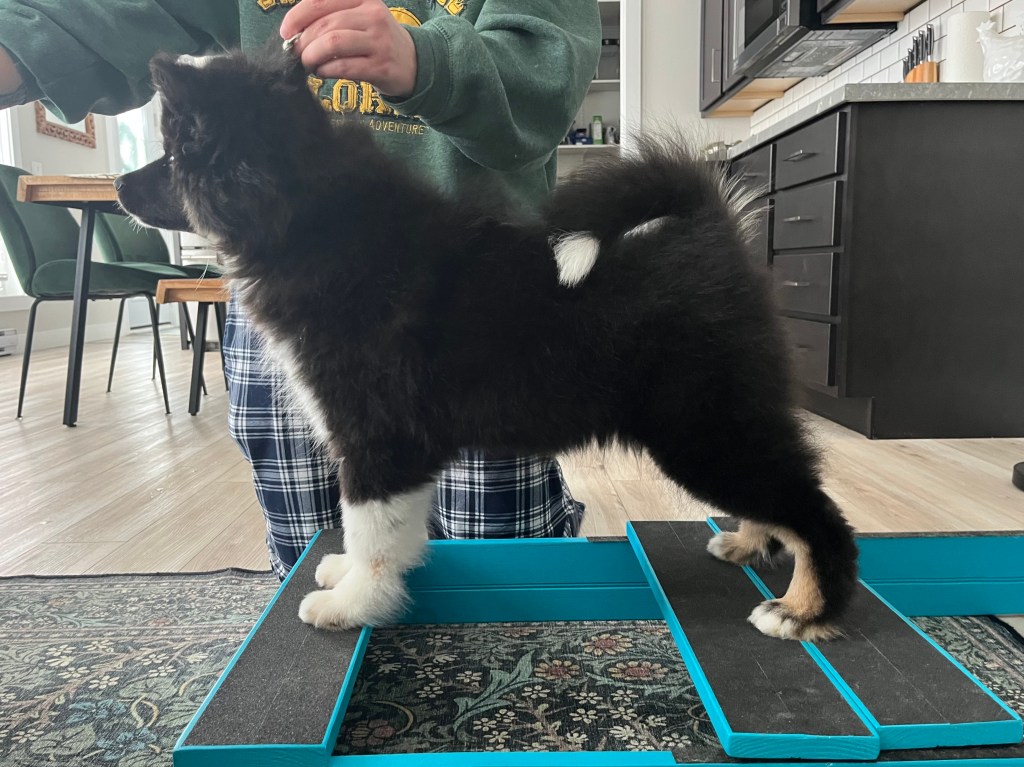Our foundation boy and first Lapphund—where do we even begin? Timber is an extraordinary dog who loves being a part of everything we do, whether it’s hiking in the woods or cuddling up on the couch. He’s always the first to greet us at the door when we come home, and the one who insists on a kiss (and a cookie, of course!) before heading to bed. His friendly and outgoing nature makes him a joy in the show ring and in sports—he’s always eager to catch the “ghosts” (a.k.a. bags) during sprinter.